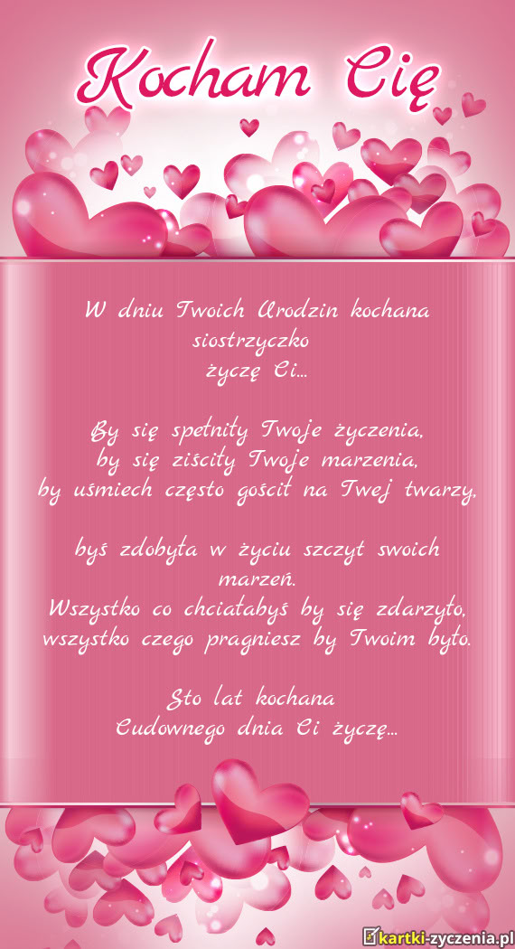 W dniu Twoich Urodzin kochana siostrzyczko życzę Ci