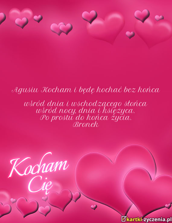 Agusiu Kocham i będę kochać bez końca wśród dnia i wschodzącego słońca wśród nocy - Gotowa miłosna kartka